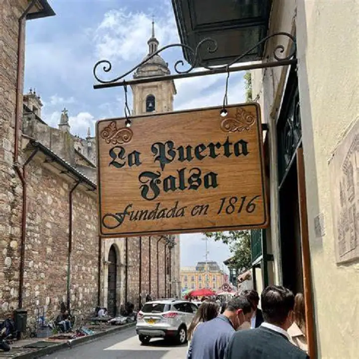 You can discover a small, intimate restaurant with a wooden entrance and people standing outside waiting in line if you are strolling through Bogotá’s old city center, Bogotá, Colombia. This is La Puerta Falsa, and it is Bogotá’s hippest and oldest restaurant.